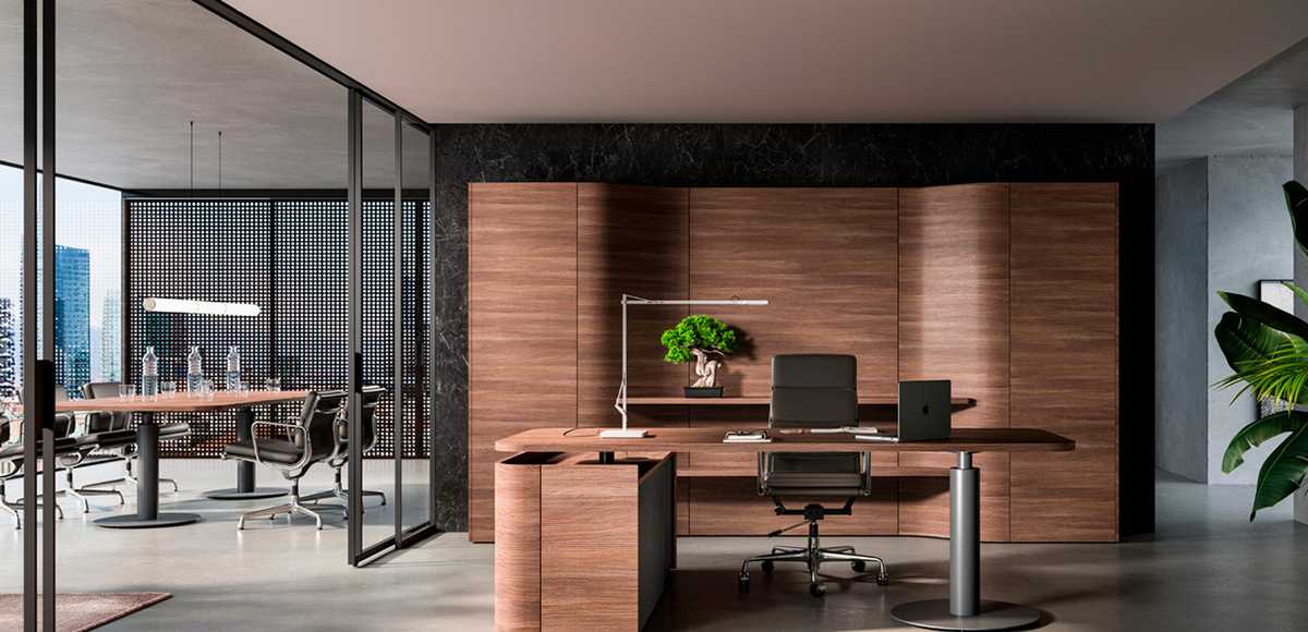 Миланский руководительский офисный стол: чистые и мягкие линии
